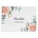 Un fondo blanco. Decorada con rosas de oro rosa de color acuático, vegetación eucalipto y estribillos dorados. Personalice y agregue el nombre de su dama de honor.