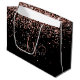 Bolsa de Regalo de Monograma Elegante Rosa Glam Gold Purpurina. Personalice fácilmente este diseño de bolso de regalo de moda de moda con un elegante purpurina brillante de oro rosa sobre un fondo negro. El diseño incluye su monograma manuscrito con remolques de bonito y su nombre.