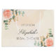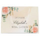 Pinceladas doradas con acuarela como fondo. Decorado con una flor de rosa en acuarela rosa dorado y dorado, floral, hojas de eucalipto verdes, ramitas, follaje y ramitas de oro falsas. Personaliza y añade un nombre. El nombre está escrito con una tipografía moderna a mano.