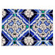 Un hermoso diseño vintage de Azulejo azulejos patrón español y portugués en azul marino, blanco y toques de naranja verde y claro. Un bonito sabor mediterráneo perfecto para la decoración de verano. El diseño de mosaico geométrico rústico perfecto, ideal para cualquier ocasión.