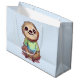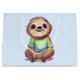 Bolsa de regalo con un adorable ilustracion con una pereza de aspecto alegre usando una camiseta verde. Sentado con las piernas cruzadas y relajado.