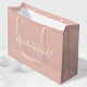 "¿Serás Mi niñera?" La moderna bolsa de regalo de propuesta incluye el título "¿Serás mi dama de honor?" en blanco estilo de letra de escritura moderno con un fondo rosa negro.