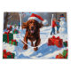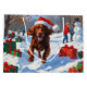 Un bonito Red Setter irlandés recorre alegremente el paisaje nevado, usando un gorra festivo de Navidades rojos. Esta vibrante escena invernal resalta el sedoso abrigo rojo de la raza, el espíritu enérgico y la naturaleza afectuosa mientras se celebra el calor y la magia de la temporada navideña. Un diseño animado y lleno de encanto festivo