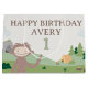 Esta encantadora bolsa de regalo de cumpleaños de Slumberkins presenta al simpático personaje Bigfoot en una escena boscosa acogedora diseñada para celebrar un día especial. Bigfoot aparece saludando con una dulce sonrisa, rodeado de colinas verdes onduladas, árboles, nubes y detalles de un campamento que reflejan la estética tranquila y juguetona de Slumberkins. El diseño incluye el texto "Feliz Cumpleaños" junto con un nombre y edad personalizables, lo que lo convierte en un divertido y personal añadido a cualquier celebración de cumpleaños infantil. Perfecta para favores de fiesta o regalos, esta bolsa añade un toque cálido y caprichoso inspirado en el mundo de Slumberkins.