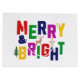 Un diseño festivo con letras de colores audaces, un muñeco de nieve, un reno y un pino.