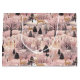 Elegant deer prance through snow covered pink hills among a forest of black trees on this delicate winter pattern.