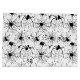Creepy seamless Halloween pattern featuring black spiders, spider webs, and ink splatters on a white background — perfect for spooky-themed occasion.