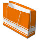 Este diseño deportivo presenta rayas de carreras blancas de borde inferior contra un vibrante fondo naranja brillante.