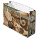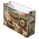 Personalice esta bolsa de regalo de gran tamaño industrial victoriana de vapor para sus ocasiones especiales o celebraciones de vacaciones. Los lados de la bolsa están decorados con relojes de bolsillo antiguos de estilo steampunk y la parte delantera y trasera de la gran bolsa de regalo son personalizables con tus propios deseos. En la parte delantera y trasera de la gran bolsa de regalo hay libros antiguos en la biblioteca y sobres de correo de cuero y mensajes. ¡Agarra también el papel de papel de tejido!