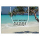 Una bolsa de regalo de cumpleaños con una hermosa fotografía soleada. Aguas del océano azul turquesa, con una playa de arena blanca. Un árbol tropical en solitario es un lugar agradable para relajarse y disfrutar de este paisaje idílico.