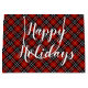 El trenzado escocés rojo y negro audaz fue diseñado en un ángulo con texto de Felices Fiestas. El texto se puede cambiar o eliminar.
