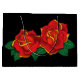 Dos rosas rojas en un fondo negro en un estilo tradicional de tatuaje.