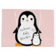 ¡Celebra a los nuevos padres y al bebé con este lindo diseño de ducha de pingüino! El suave fondo rosa y el bonito pingüino personalizado hacen de este hotel un diseño perfecto para una niña en camino, sobre todo para una ducha en invierno.
