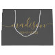 Bolsa De Regalo Grande Texto de nombre personalizado femenino dorado gris