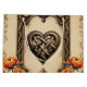The heartbeat of the ancient gods: A magical Celtic frame. An ornate, Celtic-inspired frame with complex knot patterns in gold and brown tones. A spade-shaped ornament with a knot is located at the top, and a heart-shaped knot is located at the bottom, flanked by vibrant orange and red flowers. The design combines tradition, strength, and vitality.