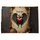 The pulsating heart of mechanics, a glowing steampunk heart. The frame features the characteristic steampunk style, characterized by a fascinating blend of Victorian elegance and industrial flair. Complex mechanical details such as intricate gears, screws, and bolts adorn the edge, lending depth and texture to the design. The heart is mechanically designed, with visible springs, small gears, and metallic embellishments that symbolize its vitality in a technical context. Flanking the heart are dark wings.