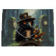 The raven powered by Coffee and Questionable Time Travel. Because even ravens need a refill before bending time. Meet Professor Corvyn Gearfeather, a chronically caffeinated raven with a questionable PhD in temporal mechanics and an even more questionable sleep schedule. Together with his over-eager sidekick Widget Copperbeak – a tiny, overly chatty mechanical bird who thinks he’s an engineer – they roam the moonlit realms, “fixing” clocks that were never really broken.