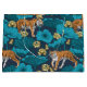 Patrón de tigres vectoriales dibujados a mano y flores de loto y hojas