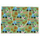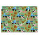 Un adorable patrón que representa la vida de granja con vacas, caballos, granjas y graneros.