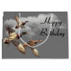 Tres patos mallard volando y nubes sobre un fondo gris para un cumpleaños. El texto es editable. Se puede cambiar el color de fondo.