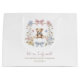 Share your excitement for the new arrival with this lovely teddy bear and floral baby shower gift carrier. The artwork showcases a cuddly teddy bear framed by a beautiful watercolor floral arrangement and elegant bows in shades of pink and blue. The playful text "We can bearly wait!" perfectly encapsulates the joyous anticipation of a baby shower. This unique bag is ideal for presenting baby shower gifts, making the unwrapping experience even more magical. The charming depiction of the teddy bear and the surrounding flowers create a truly special memento.