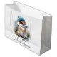 Presenta tus regalos de vacaciones con un toque de encanto personalizado usando nuestra bolsa de regalo "Winter Kookaburra Wishes". Esta deliciosa bolsa cuenta con el adorable ilustracion acuático de una kookaburra encaramada en una rama, con su alegre beanie de rayas azules y blancas, empolvada con copos de nieve, impreso tanto en la parte delantera como en la trasera. Este encantador pájaro australiano le aporta un toque único y alegre a sus regalos. Debajo del diseño de kookaburra en ambos lados de la bolsa, encontrarás un campo de texto de personalizable. Personalice cada lado con: El nombre del destinatario ("Por [Nombre]") Un saludo breve y dulce ("Navidades felices") Un mensaje festivo ("Deseos cálidos de invierno") Su nombre como donante ("Desde [Su Nombre]") O cualquier otro texto breve y alegre que desee, haciendo que cada regalo se sienta especial.