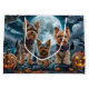 Descanse el espíritu espeluznante con este inquietante diseño de Halloween que presenta una manada de perros bajo un cielo oscuro, iluminado por la luna, rodeados de bates voladores y calabazas brillantes. Perfecto para los amantes de la diversión con sus peludos amigos.