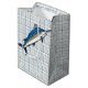 No muchos peces son más increíblemente hermosos que el marlin azul — y no muchos peces son más grandes. El marlin azul es el más grande de los marlins del Atlántico y, en serio, uno de los peces más grandes del mundo. Como con algunas especies, la hembra es a menudo un poco más grande que el macho. Las mujeres pueden crecer hasta 4 metros de largo y pesar más de 1900 libras, aunque el promedio es de unos 11 pies de largo por 300 libras. Un azul profundo en la parte superior y un blanco plateado debajo, con una aleta dorsal pronunciada y una mandíbula superior larga, letal y en forma de lanza (a la que algunos se refieren como una cuenta), los marlins azules son uno de los peces más fácilmente identificables y reconocibles del mundo. Marlins es conocido por su increíble resistencia en una lucha cuando están enganchados, lo que los convierte en uno de los favoritos de los pescadores de grandes juegos. Aunque también se puede decir de prácticamente cualquier pez super grande, no puedo imaginar que haya mucho más emotivo para el ávido pescador que enganchar a uno de estos gigantes y verlo romper el agua en la lucha. Este diseño rinde homenaje a este majestuoso pez más que a los pescadores que lo buscan. Para esta maravillosa bolsa de regalo, una sola morena azul adorna el frente y la parte posterior, que están completamente cubiertos por la manta de color. También hay TRES pañuelos de envoltura coordinados incluidos en esta maravillosa colección, así como etiquetas de regalo para una verdaderamente espectacular presentación de regalo para el Día del Padre, el cumpleaños de tu padre, el cumpleaños de tu esposo o para cualquier ocasión que celebre tu angloparo favorito.