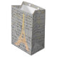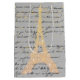 Diseño original con la Torre Eiffel. Manuscrito viejo confetti en el fondo.