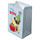 Felices saludos de cumpleaños con este lindo diseño que presenta un sonriente y fiesta cachorro Pug vestido de gorra con un quequito de cumpleaños. "Feliz cumpleaños" delante y "¡Haz un deseo!" detrás. El texto se puede cambiar fácilmente; sólo tiene que hacer clic en el botón personalizar.