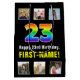 Este alegre y alegre diseño de bolsos de regalo con temática de cumpleaños presenta un gran número de "23" con un colorido patrón de gradiente inspirado en el espectro del arcoiris, además del mensaje "Feliz cumpleaños número 23", y un nombre de destinatario del personalizable. Arriba y debajo del mensaje hay algunas fotos que se pueden personalizar, tal vez con fotos del destinatario, la familia y amigos del destinatario, y/o el(los) remitente(s) del regalo. Una bolsa de regalo alegre como esta puede ser usada cuando se da un regalo o regalo en honor al 23 cumpleaños de alguien. (Fotografía © Storytree Studios, Stanford, CA.) [~Z0000669]