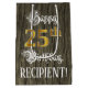 Este elegante y elegante diseño de bolsos de regalo con temática de cumpleaños incluye el mensaje "Feliz cumpleaños 25", más un nombre de destinatario personalizado. Parte del mensaje está en un texto opulento de estilo de escritura, el gran número "25th" presenta un patrón de aspecto falso/imitación de inspiración dorada, y el fondo tiene un patrón inspirado en la imitación/imitación de grano de madera. Una elaborada bolsa de regalo con tema de cumpleaños como esta podría ser una manera respetable de envolver un regalo o regalo para alguien que esté celebrando su cumpleaños 25. [~Z0000562]