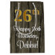 Este sofisticado, lujoso y elegante diseño de bolsos de regalo con temática de cumpleaños presenta un gran número ordinal "26th" con un aspecto imitación/falso de inspiración dorada, junto con el mensaje de bienvenida de cumpleaños "Feliz cumpleaños 26", y un nombre editable del destinatario con un tipo de letra estilo script. El fondo tiene un diseño de imitación de madera. Una bolsa de regalo con temas de cumpleaños como esta puede ser usada cuando se da un regalo o regalo para la celebración del 26 cumpleaños de alguien. [~Z0000520]