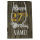 Este elegante y elaborado diseño de bolsos de regalo de cumpleaños incluye el mensaje "Feliz cumpleaños número 27", y un nombre de destinatario personalizado. Parte del mensaje está en un texto elegante estilo script, el gran número "27th" presenta un patrón de estilo inspirado en el oro imitación/imitación, y el fondo tiene un patrón inspirado en la imitación de los granos de madera. Una opulenta bolsa de regalo con tema de cumpleaños como esta puede ser una manera respetable de envolver un regalo o regalo para celebrar el cumpleaños 27 de alguien. [~Z0000562]