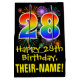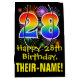 Este emocionante, divertido y colorido diseño de bolsas de regalo con la temática del cumpleaños incluye un gran número de "28" con un patrón inspirado en el gradiente del espectro del arco iris, junto con el mensaje "Feliz cumpleaños número 28", y un nombre personalizado para el destinatario. También tiene un colorido patrón de fondo inspirado en la apariencia de fuegos artificiales de celebración reventando. Una bolsa de regalo con tema de cumpleaños como esta puede ser una manera divertida de envolver un regalo o un regalo para celebrar el cumpleaños 28 de alguien. [~Z0000509]