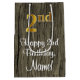 Este elegante, lujoso y elegante diseño de bolsos de regalo con temática de cumpleaños presenta un gran número ordinal "2º" con un aspecto falso/imitación de oro, además del mensaje de bienvenida de cumpleaños "Feliz segundo cumpleaños", y un nombre de destinatario personalizado con un tipo de letra estilo script. También tiene un diseño de fondo falso inspirado en la madera. Una sofisticada bolsa de regalo como esta podría ser usada cuando se da un regalo o regalo en honor al segundo cumpleaños de alguien. [~Z0000520]
