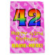 Este alegre, optimista y amoroso diseño de bolsas de regalo de cumpleaños presenta un gran número "42" con un patrón inspirado en el gradiente del espectro del arco iris, junto con el mensaje "Feliz cumpleaños número 42", y un nombre de destinatario personalizado. También tiene un fondo divertido con formas cardíacas de color rosa en un patrón de rayas. Una bolsa de regalo feliz como esta puede ser usada cuando se le dan regalos al envasado a alguien en celebración de su 42 cumpleaños. [~Z0000511]