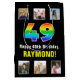Este llamativo y optimista diseño de bolsos de regalo de cumpleaños presenta un gran número de "49" con un vibrante patrón de gradiente inspirado en el espectro del arco iris, además del mensaje "Feliz cumpleaños 49", y un nombre de destinatario del personalizable. Las fotos de arriba y abajo del mensaje pueden ser personalizadas, tal vez con fotos del destinatario, la familia y amigos del destinatario, y/o el(los) remitente(s) del regalo. Una bolsa de regalo como esta podría ser usada para envolver regalos que se le dan a alguien en celebración de su 49º cumpleaños. (Fotografía © Storytree Studios, Stanford, CA.) [~Z0000669]