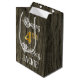 Bolsa De Regalo Mediana 4.º Cumpleaños: Faux Gold Look & Faux Wood Pattern