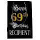Bolsa De Regalo Mediana 69 cumpleaños ~ Fancy Script; Faux Gold Look; Nomb