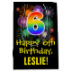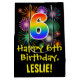 Este divertido, emocionante y colorido diseño de bolsos de regalo con temática de cumpleaños presenta un gran número de "6" con un patrón inspirado en el gradiente del espectro del arco iris, junto con el mensaje "Feliz sexto cumpleaños", y un nombre de destinatario del personalizable. También presenta un colorido patrón de fondo inspirado en la apariencia de los fuegos artificiales de celebración que estallan. Una bolsa de regalo con tema de cumpleaños como esta puede ser una manera divertida de envolver un regalo o un regalo para celebrar el sexto cumpleaños de alguien. [~Z0000509]