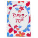 flores de margarita naranja, roja y azul sobre fondo blanco para 70 años. Se puede cambiar el color de fondo. El número de edad es editable.