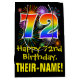 Este divertido, emocionante y colorido diseño de bolsos de regalo con temática de cumpleaños presenta un gran número "72" con un patrón inspirado en el gradiente del espectro del arco iris, junto con el mensaje "Feliz cumpleaños número 72", y un nombre de destinatario personalizado. También presenta un colorido patrón de fondo inspirado en la apariencia de los fuegos artificiales de celebración que estallan. Una bolsa de regalo con temas de cumpleaños como esta puede ser usada cuando se da un regalo o regalo para la celebración del cumpleaños setenta y dos de alguien. [~Z0000509]