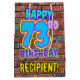 La parte delantera de este divertido diseño de bolsos de regalo con temática de cumpleaños incluye el mensaje "FELIZ CUMPLEAÑOS 73″, con un aspecto vibrante, colorido e inspirado en el graffiti, además del nombre del destinatario del personalizable. El fondo está inspirado en una pared de ladrillo. Una bolsa de regalo con temas de cumpleaños como esta puede ser una manera divertida de envolver un regalo o regalo que se le da a alguien que está celebrando su cumpleaños setenta y tres. [~Z0000536]