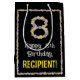 Este floral diseño de bolsos de regalo inspirados en la botánica, presenta el mensaje "Feliz octavo cumpleaños", y un nombre del destinatario del personalizable. El gran número "8" y el borde tienen iconos florales. Una bolsa de regalo como esta puede ser usada para envolver regalos o regalos que se le dan a alguien en celebración de su octavo cumpleaños. [~Z0000653]