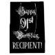Este suntuoso y ornamentado diseño de bolsos de regalo con temática de cumpleaños presenta el mensaje "Feliz cumpleaños 91", en lujoso texto de estilo de escritura, en un fondo de color negro. También incluye un nombre de destinatario personalizado. Una bolsa de regalo con temas de cumpleaños como esta puede ser usada cuando se da un regalo o regalo para la celebración del cumpleaños 91 de alguien. [~Z0000557]