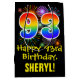 Este colorido, emocionante y divertido diseño de bolsos de regalo con temática de cumpleaños presenta un gran número "93" con un patrón inspirado en el gradiente del espectro arcoiris, junto con el mensaje "Feliz cumpleaños número 93", y un nombre de destinatario personalizado. También tiene un colorido patrón de fondo inspirado en la apariencia de los fuegos artificiales de celebración que estallan. Una bolsa de regalo con temas de cumpleaños como esta puede ser usada cuando se da un regalo o regalo para la celebración del cumpleaños 93 de alguien. [~Z0000509]