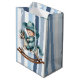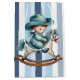A Western Blue And White Striped Medium Gift Bag Designed With A Baby Cowboy Riding A Rocking Horse