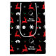 Bolsa de Navidades rojos, verdes y blancos de encurtido medio con reno, bolas de picnic y copos de nieve sobre fondo negro. Gran idea para envolver tus regalos para tu amigo o miembro de tu familia de pickleball