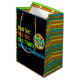 Bolsa de regalo de fiesta de pelotas de pellebol. Cuando cometes un error en la cancha de pickleball, ¿a quién culpas? La pelota, la red de pickleball, tu palillo de pickleball, tu compañero de pickleball, el viento, algo de distracción? Definitivamente no te culpas a ti mismo, ¿verdad? Impresionante gráfico divertido de pickleball - malvada red, mala pelota, mal jugador de palas. Un colorido regalo con tema de pickleball para tu mamá, papá, tío, tía, hermano, hermana, vecina, abuelo, abuela, esposo, esposa, amiga o colega de trabajo que no deja de hablar de pickleball. Rayas amarillas, Naranjas, verdes azules sobre negro.